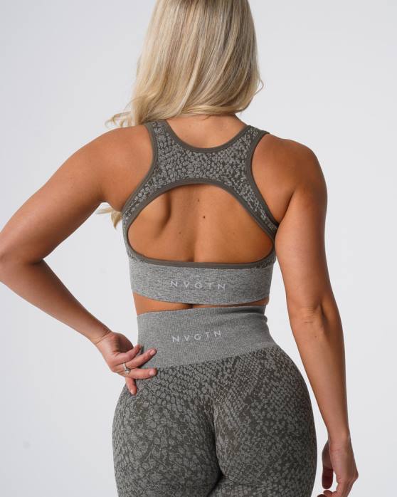 NVGTN لياقة بدنية نحيف حمالة صدر بدون خياطة من جلد الثعبان الكاكي الأخضر 420J221